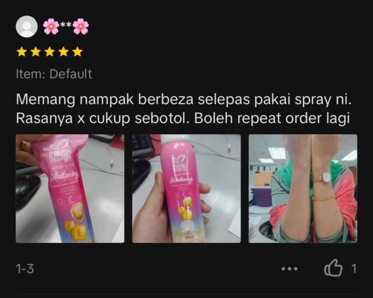 Janji! Korang confirm happy dengan Magic Whitening Spray ni. 🥰