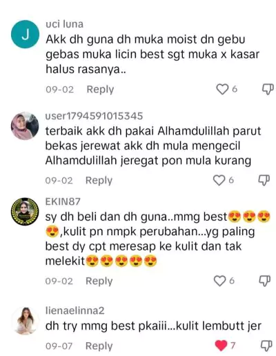 “Dia boleh tegangkan kulit muka ya sebab dia ada collagen, susu kambing, vitamin E”